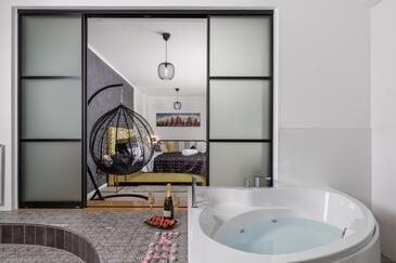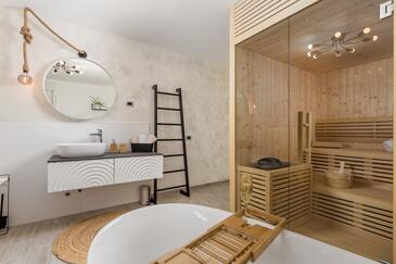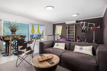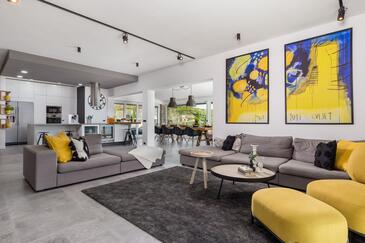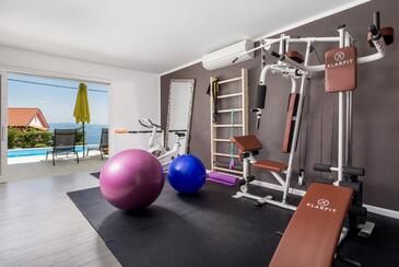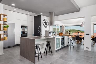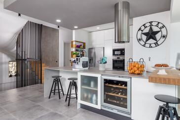 Haus bietet Platz für 12 Gäste. Die Betten sind in Schlafzimmern, die es 5 gibt, innerhalb einer Gesamtfläche von 311m2, angeordnet. Die Gäste können den Meerblick von eigener Terrasse genießen. Für vollen Genuss und Entspannung gibt es einen privaten Grill für Gäste dieser Unterkunft. Während ihres Aufenthalts können sich Gäste im privaten Schwimmbad entspannen. In der Unterkunftseinheit besteht die Möglichkeit des Mitbringens von Haustieren gegen Aufpreis.