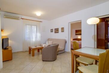 Ferienwohnung bietet Platz für 4 Gäste. Die Betten sind in Schlafzimmern, die es 2 gibt, innerhalb einer Gesamtfläche von 53m2, angeordnet. Die Gäste haben eine eigene Terrasse zur Verfügung, auf der sie in warmen Sommernächten genießen können. Es ist erlaubt, Speisen auf dem Gemeinschafts-Grill vorzubereiten.