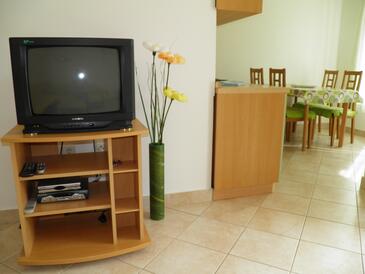 Ferienwohnung bietet Platz für 4 Gäste. Die Betten sind in Schlafzimmern, die es 1 gibt, und in Wohnzimmer, innerhalb einer Gesamtfläche von 40m2, angeordnet. Die Gäste haben eine eigene Terrasse zur Verfügung, auf der sie in warmen Sommernächten genießen können. Es ist erlaubt, Speisen auf dem Gemeinschafts-Grill vorzubereiten. In der Unterkunftseinheit besteht die Möglichkeit des Mitbringens von Haustieren gegen Aufpreis.