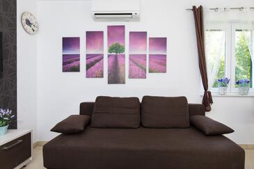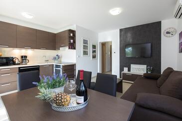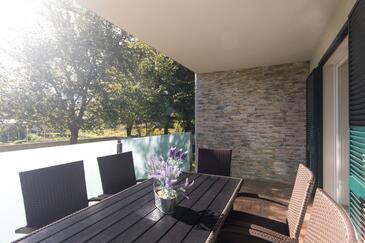 Ferienwohnung bietet Platz für 4 Gäste. Die Betten sind in Schlafzimmern, die es 2 gibt, innerhalb einer Gesamtfläche von 42m2, angeordnet. Die Gäste haben eine eigene Terrasse zur Verfügung, auf der sie in warmen Sommernächten genießen können.