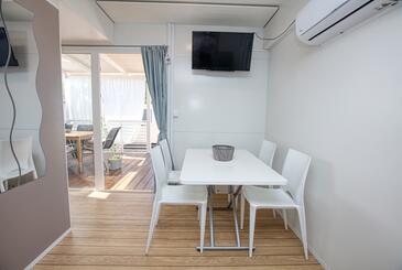 Ferienwohnung bietet Platz für 6 Gäste. Die Betten sind in Schlafzimmern, die es 2 gibt, und in Wohnzimmer, innerhalb einer Gesamtfläche von 30m2, angeordnet. Die Gäste haben eine eigene Terrasse zur Verfügung, auf der sie in warmen Sommernächten genießen können. Es ist erlaubt, Speisen auf dem Gemeinschafts-Grill vorzubereiten.