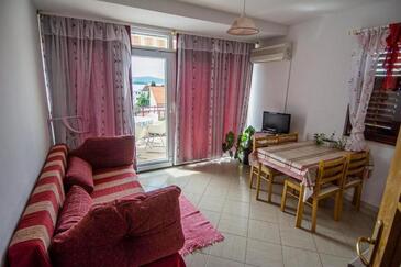 Ferienwohnung bietet Platz für 4 Gäste. Die Betten sind in Schlafzimmern, die es 1 gibt, und in Wohnzimmer, innerhalb einer Gesamtfläche von 35m2, angeordnet. Die Gäste haben eine eigene Terrasse zur Verfügung, auf der sie in warmen Sommernächten genießen können. Das Apartment bietet Meerblick. Es ist erlaubt, Speisen auf dem Gemeinschafts-Grill vorzubereiten.