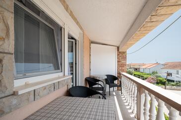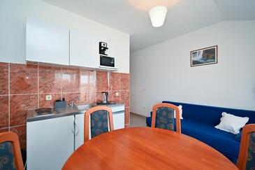 Ferienwohnung bietet Platz für 7 Gäste. Die Betten sind in Schlafzimmern, die es 2 gibt, und in Wohnzimmer, innerhalb einer Gesamtfläche von 38m2, angeordnet. Die Gäste haben einen eigenen Balkon zur Verfügung, auf der sie in warmen Sommernächten genießen können. Es ist erlaubt, Speisen auf dem Gemeinschafts-Grill vorzubereiten.