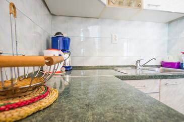 Ferienwohnung bietet Platz für 4 Gäste. Die Betten sind in Schlafzimmern, die es 1 gibt, und in Wohnzimmer, innerhalb einer Gesamtfläche von 43m2, angeordnet. Die Gäste haben eine eigene Terrasse zur Verfügung, auf der sie in warmen Sommernächten genießen können. Das Apartment bietet Meerblick. Es ist erlaubt, Speisen auf dem Gemeinschafts-Grill vorzubereiten.