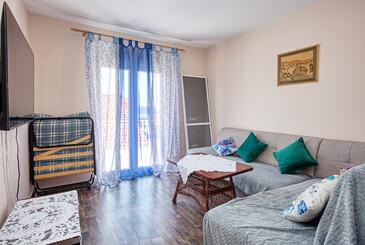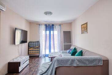 Ferienwohnung bietet Platz für 6 Gäste. Die Betten sind in Schlafzimmern, die es 2 gibt, und in Wohnzimmer, innerhalb einer Gesamtfläche von 57m2, angeordnet. Die Gäste haben einen eigenen Balkon zur Verfügung, auf der sie in warmen Sommernächten genießen können. Das Apartment bietet Meerblick. Es ist erlaubt, Speisen auf dem Gemeinschafts-Grill vorzubereiten. In der Unterkunftseinheit besteht die Möglichkeit des Mitbringens von Haustieren gegen Aufpreis.