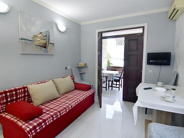 Ferienwohnung bietet Platz für 4 Gäste. Die Betten sind in Schlafzimmern, die es 2 gibt, innerhalb einer Gesamtfläche von 70m2, angeordnet. Die Gäste haben eine eigene Terrasse zur Verfügung, auf der sie in warmen Sommernächten genießen können. Es ist erlaubt, Speisen auf dem Gemeinschafts-Grill vorzubereiten.