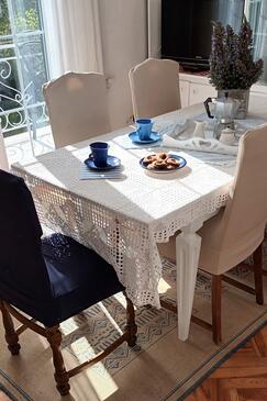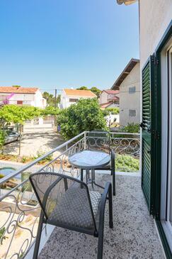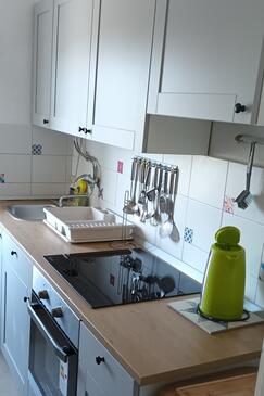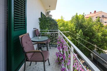 Ferienwohnung bietet Platz für 8 Gäste. Die Betten sind in Schlafzimmern, die es 3 gibt, innerhalb einer Gesamtfläche von 54m2, angeordnet. Die Gäste haben einen eigenen Balkon zur Verfügung, auf der sie in warmen Sommernächten genießen können. Das Apartment bietet Meerblick. Es ist erlaubt, Speisen auf dem Gemeinschafts-Grill vorzubereiten.