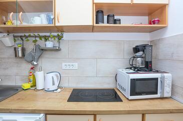 Ferienwohnung bietet Platz für 8 Gäste. Die Betten sind in Schlafzimmern, die es 3 gibt, innerhalb einer Gesamtfläche von 54m2, angeordnet. Die Gäste haben einen eigenen Balkon zur Verfügung, auf der sie in warmen Sommernächten genießen können. Das Apartment bietet Meerblick. Es ist erlaubt, Speisen auf dem Gemeinschafts-Grill vorzubereiten.
