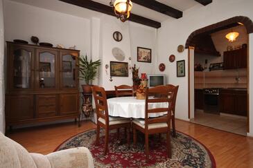 Ferienwohnung bietet Platz für 5 Gäste. Die Betten sind in Schlafzimmern, die es 2 gibt, innerhalb einer Gesamtfläche von 55m2, angeordnet. Die Gäste haben eine eigene Terrasse zur Verfügung, auf der sie in warmen Sommernächten genießen können. Es ist erlaubt, Speisen auf dem Gemeinschafts-Grill vorzubereiten.