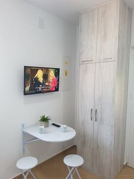 Studio bietet Platz für 3 Gäste. Die Betten sind in Schlafzimmern, die es 1 gibt, und in Wohnzimmer, innerhalb einer Gesamtfläche von 20m2, angeordnet. Die Gäste haben eine eigene Terrasse zur Verfügung, auf der sie in warmen Sommernächten genießen können. Das Studio-Apartment bietet Meerblick. Es ist erlaubt, Speisen auf dem Gemeinschafts-Grill vorzubereiten. In der Unterkunftseinheit besteht die Möglichkeit des Mitbringens von Haustieren gegen Aufpreis.