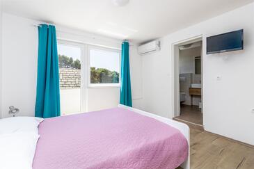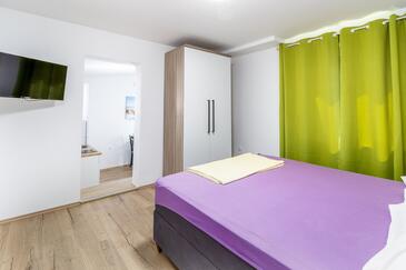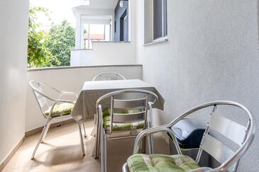 Ferienwohnung bietet Platz für 5 Gäste. Die Betten sind in Schlafzimmern, die es 1 gibt, und in Wohnzimmer, innerhalb einer Gesamtfläche von 30m2, angeordnet. Die Gäste haben eine eigene Terrasse zur Verfügung, auf der sie in warmen Sommernächten genießen können. Das Apartment bietet Meerblick. Es ist erlaubt, Speisen auf dem Gemeinschafts-Grill vorzubereiten.