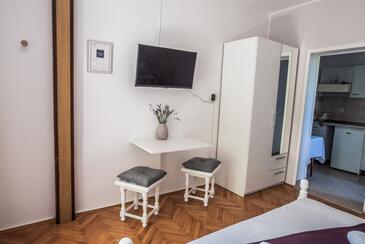 Ferienwohnung bietet Platz für 2 Gäste. Die Betten sind in Schlafzimmern, die es 1 gibt, innerhalb einer Gesamtfläche von 20m2, angeordnet. Die Gäste haben eine eigene Terrasse zur Verfügung, auf der sie in warmen Sommernächten genießen können. Es ist erlaubt, Speisen auf dem Gemeinschafts-Grill vorzubereiten.