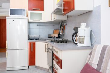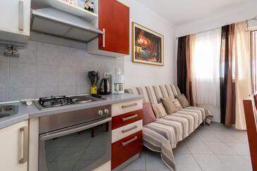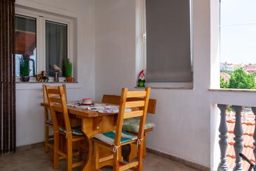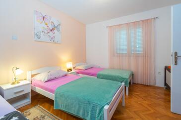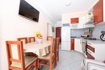 Ferienwohnung bietet Platz für 5 Gäste. Die Betten sind in Schlafzimmern, die es 2 gibt, innerhalb einer Gesamtfläche von 51m2, angeordnet. Die Gäste haben eine eigene Terrasse zur Verfügung, auf der sie in warmen Sommernächten genießen können. Es ist erlaubt, Speisen auf dem Gemeinschafts-Grill vorzubereiten.
