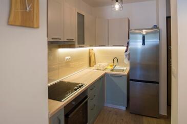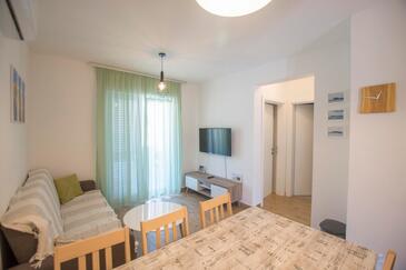 Ferienwohnung bietet Platz für 4 Gäste. Die Betten sind in Schlafzimmern, die es 2 gibt, innerhalb einer Gesamtfläche von 40m2, angeordnet. Die Gäste haben eine eigene Terrasse zur Verfügung, auf der sie in warmen Sommernächten genießen können.