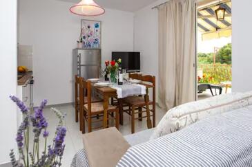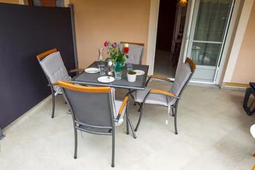 Ferienwohnung bietet Platz für 4 Gäste. Die Betten sind in Schlafzimmern, die es 1 gibt, und in Wohnzimmer, innerhalb einer Gesamtfläche von 28m2, angeordnet. Die Gäste haben eine eigene Terrasse zur Verfügung, auf der sie in warmen Sommernächten genießen können. Das Apartment bietet Meerblick. In der Unterkunftseinheit besteht die Möglichkeit des Mitbringens von Haustieren gegen Aufpreis.