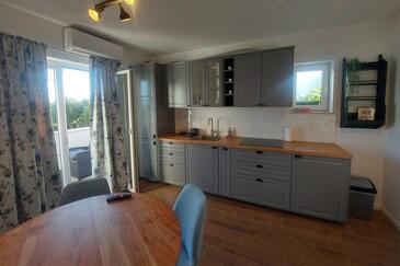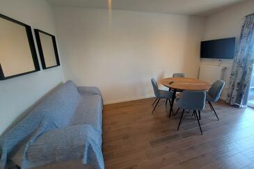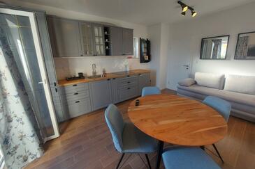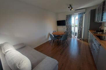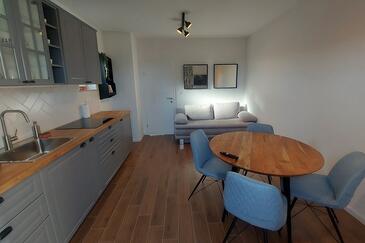 Ferienwohnung bietet Platz für 4 Gäste. Die Betten sind in Schlafzimmern, die es 1 gibt, und in Wohnzimmer, innerhalb einer Gesamtfläche von 30m2, angeordnet. Die Gäste haben einen eigenen Balkon zur Verfügung, auf der sie in warmen Sommernächten genießen können. Das Apartment bietet Meerblick. Es ist erlaubt, Speisen auf dem Gemeinschafts-Grill vorzubereiten.