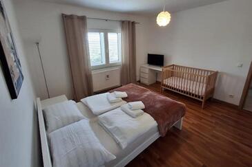 Ferienwohnung bietet Platz für 6 Gäste. Die Betten sind in Schlafzimmern, die es 3 gibt, innerhalb einer Gesamtfläche von 150m2, angeordnet. Die Gäste haben eine eigene Terrasse zur Verfügung, auf der sie in warmen Sommernächten genießen können. Es ist erlaubt, Speisen auf dem Gemeinschafts-Grill vorzubereiten.