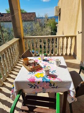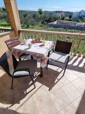 Ferienwohnung bietet Platz für 8 Gäste. Die Betten sind in Schlafzimmern, die es 3 gibt, und in Wohnzimmer, innerhalb einer Gesamtfläche von 72m2, angeordnet. Die Gäste haben eine eigene Terrasse zur Verfügung, auf der sie in warmen Sommernächten genießen können. Es ist erlaubt, Speisen auf dem Gemeinschafts-Grill vorzubereiten.
