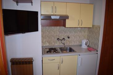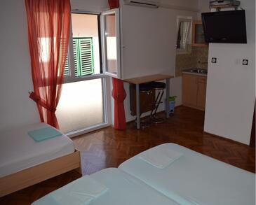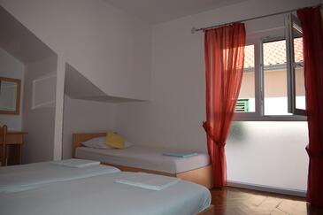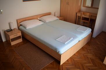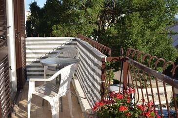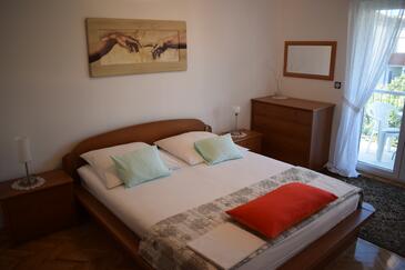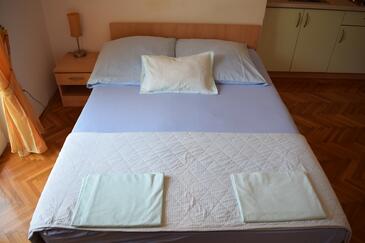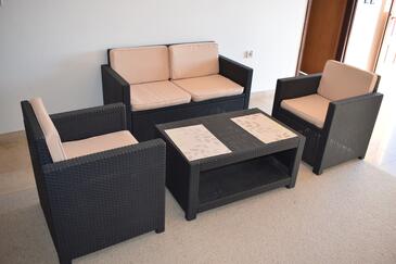 Ferienwohnung bietet Platz für 8 Gäste. Die Betten sind in Schlafzimmern, die es 3 gibt, und in Wohnzimmer, innerhalb einer Gesamtfläche von 105m2, angeordnet. Die Gäste haben einen eigenen Balkon zur Verfügung, auf der sie in warmen Sommernächten genießen können. Das Apartment bietet Meerblick. Es ist erlaubt, Speisen auf dem Gemeinschafts-Grill vorzubereiten.