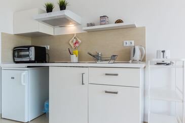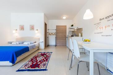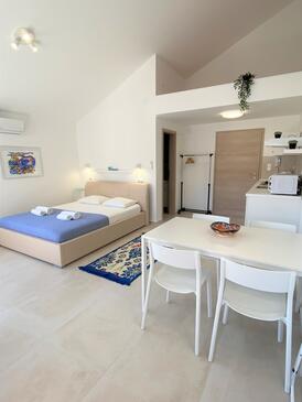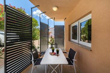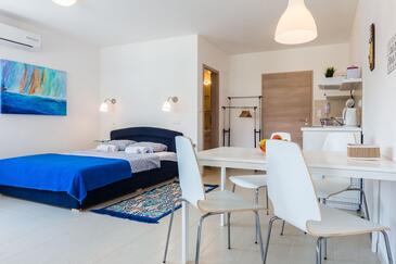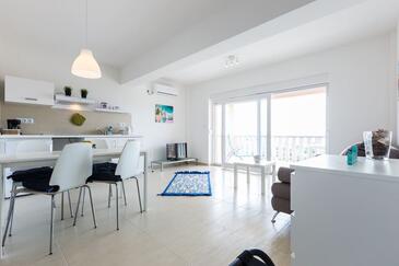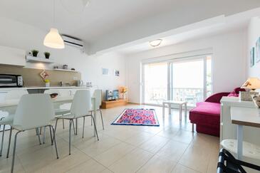 Ferienwohnung bietet Platz für 4 Gäste. Die Betten sind in Schlafzimmern, die es 2 gibt, innerhalb einer Gesamtfläche von 53m2, angeordnet. Die Gäste haben eine eigene Terrasse zur Verfügung, auf der sie in warmen Sommernächten genießen können. Das Apartment bietet Meerblick. Während ihres Aufenthalts können Gäste das gemeinsam zur Nutzung stehende Schwimmbad benutzen.