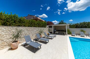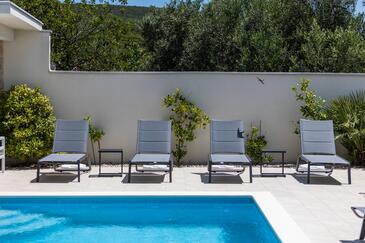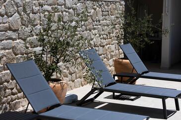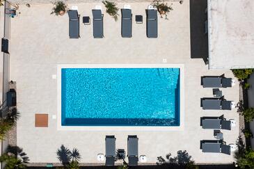Ferienwohnung bietet Platz für 4 Gäste. Die Betten sind in Schlafzimmern, die es 2 gibt, innerhalb einer Gesamtfläche von 53m2, angeordnet. Die Gäste haben eine eigene Terrasse zur Verfügung, auf der sie in warmen Sommernächten genießen können. Das Apartment bietet Meerblick. Während ihres Aufenthalts können Gäste das gemeinsam zur Nutzung stehende Schwimmbad benutzen.