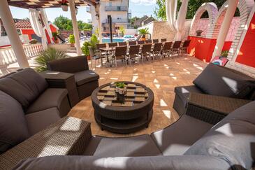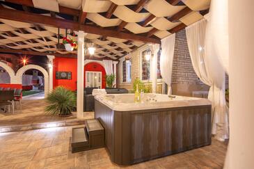 Haus bietet Platz für 16 Gäste. Die Betten sind in Schlafzimmern, die es 8 gibt, innerhalb einer Gesamtfläche von 289m2, angeordnet. Die Gäste haben eine eigene Terrasse zur Verfügung, auf der sie in warmen Sommernächten genießen können. Für vollen Genuss und Entspannung gibt es einen privaten Grill für Gäste dieser Unterkunft. Während ihres Aufenthalts können sich Gäste im privaten Schwimmbad entspannen.