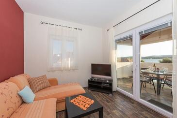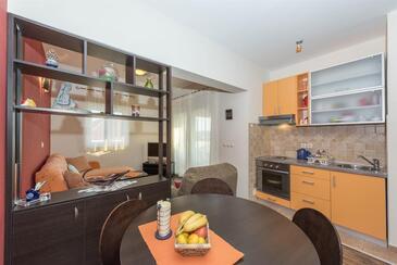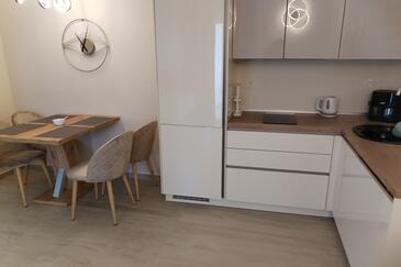 Ferienwohnung bietet Platz für 4 Gäste. Die Betten sind in Schlafzimmern, die es 2 gibt, innerhalb einer Gesamtfläche von 47m2, angeordnet. Die Gäste haben eine eigene Terrasse zur Verfügung, auf der sie in warmen Sommernächten genießen können. Das Apartment bietet Meerblick. Es ist erlaubt, Speisen auf dem Gemeinschafts-Grill vorzubereiten.