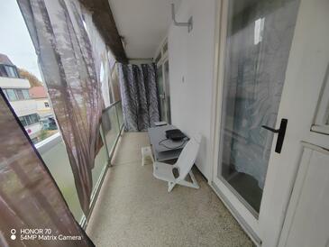 Ferienwohnung bietet Platz für 6 Gäste. Die Betten sind in Schlafzimmern, die es 2 gibt, und in Wohnzimmer, innerhalb einer Gesamtfläche von 62m2, angeordnet. Die Gäste haben einen eigenen Balkon zur Verfügung, auf der sie in warmen Sommernächten genießen können. Es ist erlaubt, Speisen auf dem Gemeinschafts-Grill vorzubereiten.
