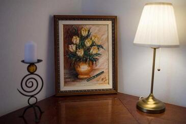 Haus bietet Platz für 8 Gäste. Die Betten sind in Schlafzimmern, die es 2 gibt, und in Wohnzimmer, innerhalb einer Gesamtfläche von 91m2, angeordnet. Die Gäste haben eine eigene Terrasse zur Verfügung, auf der sie in warmen Sommernächten genießen können. Für vollen Genuss und Entspannung gibt es einen privaten Grill für Gäste dieser Unterkunft. In der Unterkunftseinheit besteht die Möglichkeit des Mitbringens von Haustieren, und die Dienstleistung ist im Preis der Unterkunft enthalten.