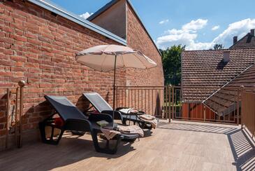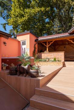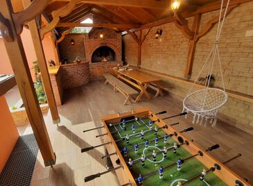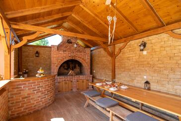 Haus bietet Platz für 8 Gäste. Die Betten sind in Schlafzimmern, die es 2 gibt, und in Wohnzimmer, innerhalb einer Gesamtfläche von 91m2, angeordnet. Die Gäste haben eine eigene Terrasse zur Verfügung, auf der sie in warmen Sommernächten genießen können. Für vollen Genuss und Entspannung gibt es einen privaten Grill für Gäste dieser Unterkunft. In der Unterkunftseinheit besteht die Möglichkeit des Mitbringens von Haustieren, und die Dienstleistung ist im Preis der Unterkunft enthalten.