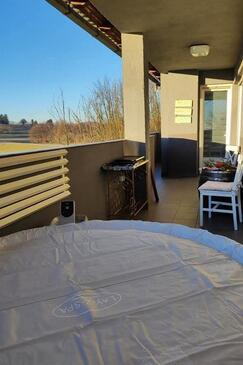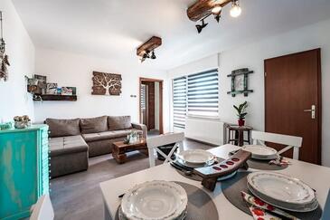 Ferienwohnung bietet Platz für 4 Gäste. Die Betten sind in Schlafzimmern, die es 1 gibt, und in Wohnzimmer, innerhalb einer Gesamtfläche von 59m2, angeordnet. Die Gäste haben eine eigene Terrasse zur Verfügung, auf der sie in warmen Sommernächten genießen können. Es ist erlaubt, Speisen auf dem Gemeinschafts-Grill vorzubereiten. In der Unterkunftseinheit besteht die Möglichkeit des Mitbringens von Haustieren gegen Aufpreis.