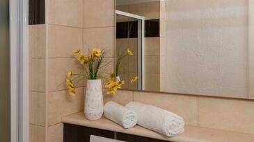 Haus bietet Platz für 5 Gäste. Die Betten sind in Schlafzimmern, die es 2 gibt, und in Wohnzimmer, innerhalb einer Gesamtfläche von 42m2, angeordnet. Die Gäste haben eine eigene Terrasse zur Verfügung, auf der sie in warmen Sommernächten genießen können. Das Haus bietet Meerblick. Für vollen Genuss und Entspannung gibt es einen privaten Grill für Gäste dieser Unterkunft. Während ihres Aufenthalts können sich Gäste im privaten Schwimmbad entspannen. Räume der gebuchten Unterkunftseinheit werden nicht in eine Ganze verbunden.