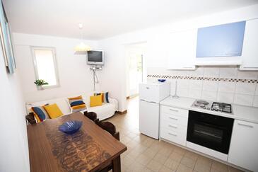Ferienwohnung bietet Platz für 4 Gäste. Die Betten sind in Schlafzimmern, die es 1 gibt, und in Wohnzimmer, innerhalb einer Gesamtfläche von 35m2, angeordnet. Die Gäste haben eine eigene Terrasse zur Verfügung, auf der sie in warmen Sommernächten genießen können. Das Apartment bietet Meerblick. Es ist erlaubt, Speisen auf dem Gemeinschafts-Grill vorzubereiten. In der Unterkunftseinheit besteht die Möglichkeit des Mitbringens von Haustieren, und die Dienstleistung ist im Preis der Unterkunft enthalten.