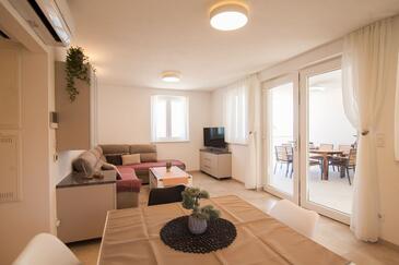 Ferienwohnung bietet Platz für 6 Gäste. Die Betten sind in Schlafzimmern, die es 3 gibt, innerhalb einer Gesamtfläche von 77m2, angeordnet. Die Gäste haben eine eigene Terrasse zur Verfügung, auf der sie in warmen Sommernächten genießen können. Das Apartment bietet Meerblick. Für vollen Genuss und Entspannung gibt es einen privaten Grill für Gäste dieser Unterkunft.