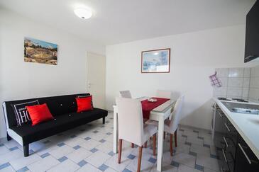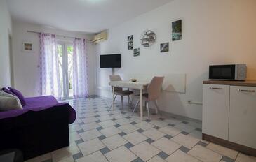 Ferienwohnung bietet Platz für 3 Gäste. Die Betten sind in Schlafzimmern, die es 1 gibt, und in Wohnzimmer, innerhalb einer Gesamtfläche von 30m2, angeordnet. Die Gäste haben eine eigene Terrasse zur Verfügung, auf der sie in warmen Sommernächten genießen können.