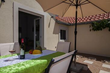 Ferienwohnung bietet Platz für 3 Gäste. Die Betten sind in Schlafzimmern, die es 1 gibt, und in Wohnzimmer, innerhalb einer Gesamtfläche von 30m2, angeordnet. Die Gäste haben eine eigene Terrasse zur Verfügung, auf der sie in warmen Sommernächten genießen können.