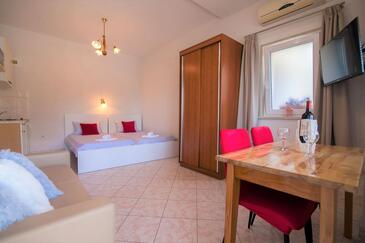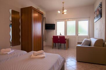 Ferienwohnung bietet Platz für 3 Gäste. Die Betten sind in Schlafzimmern, die es 1 gibt, und in Wohnzimmer, innerhalb einer Gesamtfläche von 35m2, angeordnet. Die Gäste haben eine eigene Terrasse zur Verfügung, auf der sie in warmen Sommernächten genießen können. Es ist erlaubt, Speisen auf dem Gemeinschafts-Grill vorzubereiten.