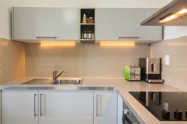 Studio bietet Platz für 2 Gäste. Die Betten sind in Schlafzimmern, die es 1 gibt, innerhalb einer Gesamtfläche von 40m2, angeordnet. Die Gäste haben einen eigenen Balkon zur Verfügung, auf der sie in warmen Sommernächten genießen können. Das Studio-Apartment bietet Meerblick. In der Unterkunftseinheit besteht die Möglichkeit des Mitbringens von Haustieren gegen Aufpreis.