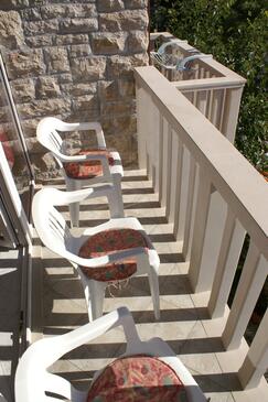 Ferienwohnung bietet Platz für 4 Gäste. Die Betten sind in Schlafzimmern, die es 2 gibt, innerhalb einer Gesamtfläche von 70m2, angeordnet. Die Gäste haben eine eigene Terrasse zur Verfügung, auf der sie in warmen Sommernächten genießen können. Das Apartment bietet Meerblick.