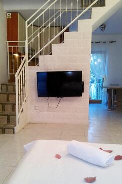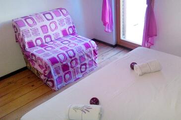 Ferienwohnung bietet Platz für 7 Gäste. Die Betten sind in Schlafzimmern, die es 2 gibt, und in Wohnzimmer, innerhalb einer Gesamtfläche von 53m2, angeordnet. Die Gäste haben eine eigene Terrasse zur Verfügung, auf der sie in warmen Sommernächten genießen können. Für vollen Genuss und Entspannung gibt es einen privaten Grill für Gäste dieser Unterkunft. In der Unterkunftseinheit besteht die Möglichkeit des Mitbringens von Haustieren gegen Aufpreis.