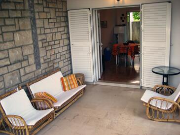 Ferienwohnung bietet Platz für 4 Gäste. Die Betten sind in Schlafzimmern, die es 2 gibt, innerhalb einer Gesamtfläche von 39m2, angeordnet. Die Gäste haben eine eigene Terrasse zur Verfügung, auf der sie in warmen Sommernächten genießen können. Durch die Terrasse der gebuchten Unterkunftseinheit gehen auch andere Gäste oder Vermieter.