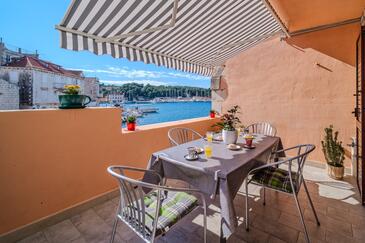 Ferienwohnung bietet Platz für 5 Gäste. Die Betten sind in Schlafzimmern, die es 2 gibt, und in Wohnzimmer, innerhalb einer Gesamtfläche von 70m2, angeordnet. Die Gäste haben eine eigene Terrasse zur Verfügung, auf der sie in warmen Sommernächten genießen können. Das Apartment bietet Meerblick.