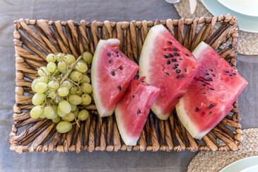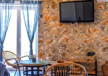 Haus bietet Platz für 6 Gäste. Die Betten sind in Schlafzimmern, die es 2 gibt, und in Wohnzimmer, innerhalb einer Gesamtfläche von 72m2, angeordnet. Die Gäste haben eine eigene Terrasse zur Verfügung, auf der sie in warmen Sommernächten genießen können. Das Haus bietet Meerblick. Es ist erlaubt, Speisen auf dem Gemeinschafts-Grill vorzubereiten. Während ihres Aufenthalts können sich Gäste im privaten Schwimmbad entspannen. In der Unterkunftseinheit besteht die Möglichkeit des Mitbringens von Haustieren gegen Aufpreis.