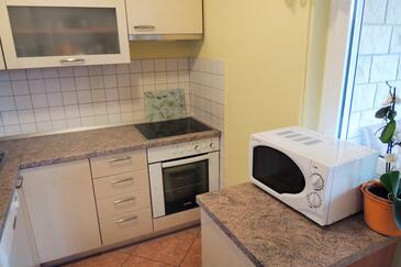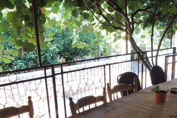 Ferienwohnung bietet Platz für 6 Gäste. Die Betten sind in Schlafzimmern, die es 3 gibt, innerhalb einer Gesamtfläche von 57m2, angeordnet. Die Gäste haben eine eigene Terrasse zur Verfügung, auf der sie in warmen Sommernächten genießen können. Es ist erlaubt, Speisen auf dem Gemeinschafts-Grill vorzubereiten.