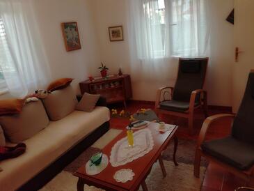 Ferienwohnung bietet Platz für 6 Gäste. Die Betten sind in Schlafzimmern, die es 2 gibt, und in Wohnzimmer, innerhalb einer Gesamtfläche von 76m2, angeordnet. Die Gäste haben eine eigene Terrasse zur Verfügung, auf der sie in warmen Sommernächten genießen können. Das Apartment bietet Meerblick. Es ist erlaubt, Speisen auf dem Gemeinschafts-Grill vorzubereiten.