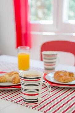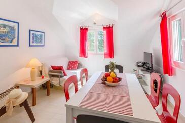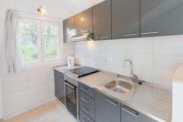 Ferienwohnung bietet Platz für 4 Gäste. Die Betten sind in Schlafzimmern, die es 2 gibt, innerhalb einer Gesamtfläche von 50m2, angeordnet. Die Gäste haben eine eigene Terrasse zur Verfügung, auf der sie in warmen Sommernächten genießen können. Das Apartment bietet Meerblick. Es ist erlaubt, Speisen auf dem Gemeinschafts-Grill vorzubereiten.