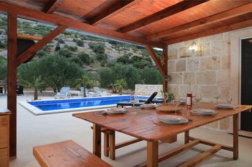 Haus bietet Platz für 6 Gäste. Die Betten sind in Schlafzimmern, die es 3 gibt, innerhalb einer Gesamtfläche von 57m2, angeordnet. Die Gäste haben eine eigene Terrasse zur Verfügung, auf der sie in warmen Sommernächten genießen können. Für vollen Genuss und Entspannung gibt es einen privaten Grill für Gäste dieser Unterkunft. Während ihres Aufenthalts können sich Gäste im privaten Schwimmbad entspannen. In der Unterkunftseinheit besteht die Möglichkeit des Mitbringens von Haustieren gegen Aufpreis.