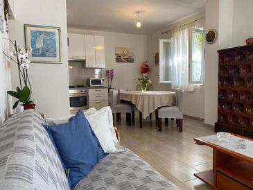 Ferienwohnung bietet Platz für 4 Gäste. Die Betten sind in Schlafzimmern, die es 2 gibt, innerhalb einer Gesamtfläche von 64m2, angeordnet. Die Gäste haben eine eigene Terrasse zur Verfügung, auf der sie in warmen Sommernächten genießen können. Das Apartment bietet Meerblick.