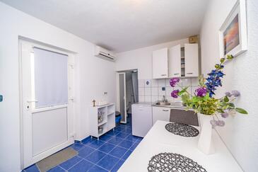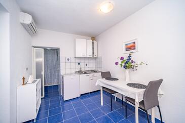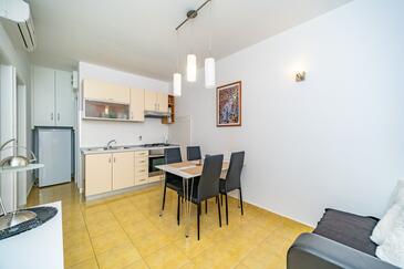 Ferienwohnung bietet Platz für 4 Gäste. Die Betten sind in Schlafzimmern, die es 2 gibt, innerhalb einer Gesamtfläche von 39m2, angeordnet. Die Gäste haben eine eigene Terrasse zur Verfügung, auf der sie in warmen Sommernächten genießen können. Es ist erlaubt, Speisen auf dem Gemeinschafts-Grill vorzubereiten.