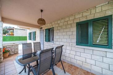 Ferienwohnung bietet Platz für 4 Gäste. Die Betten sind in Schlafzimmern, die es 2 gibt, innerhalb einer Gesamtfläche von 39m2, angeordnet. Die Gäste haben eine eigene Terrasse zur Verfügung, auf der sie in warmen Sommernächten genießen können. Es ist erlaubt, Speisen auf dem Gemeinschafts-Grill vorzubereiten.